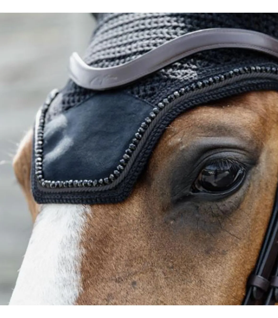 Le bonnet anti-mouches Wellington Velvet Pearls Kentucky est tricoté à la main pour garantir sa durabilité. Il est très populaire pour son look américain. Il possède un avant en effet velours avec, sur tout son contour, un ligne de perles brillantes.