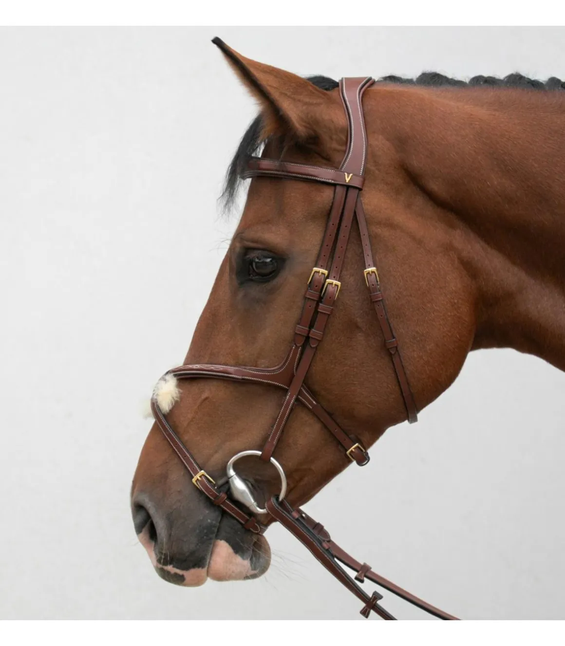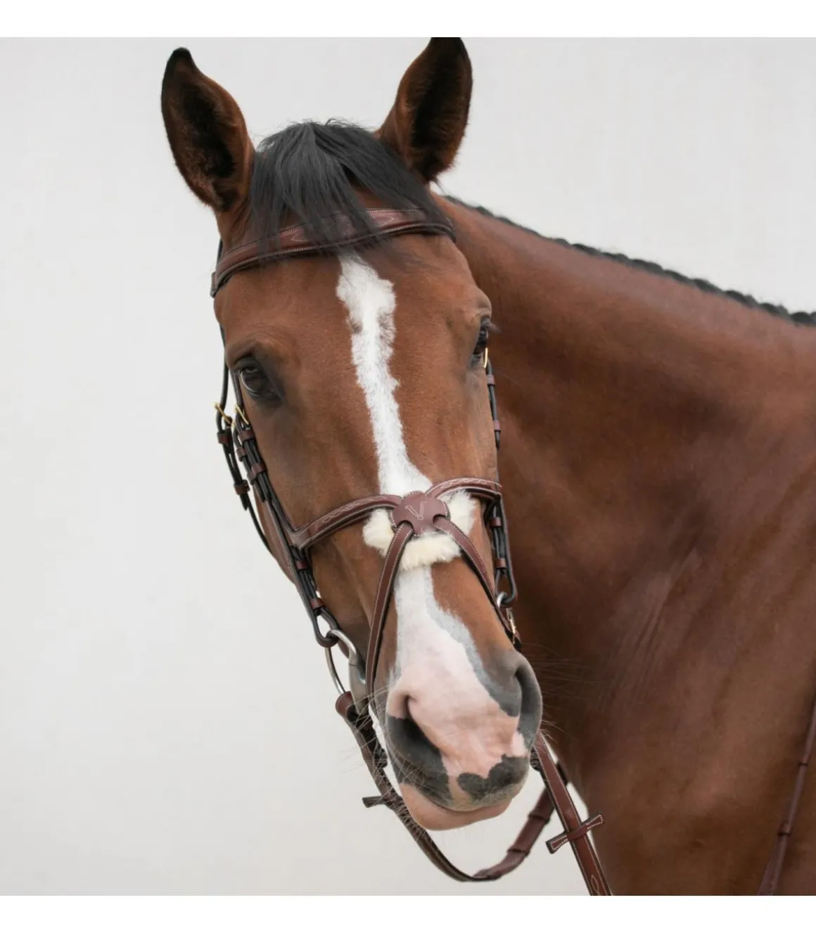 Grâce à sa conception spécifique, le bridon crossline aide à garder la bouche du cheval fermée et à limiter les mouvements latéraux de la mâchoire. Le mors reste ainsi plus stable, ce qui améliore la clarté des actions de main et le contrôle du cheval dans le travail comme en situation de parcours.