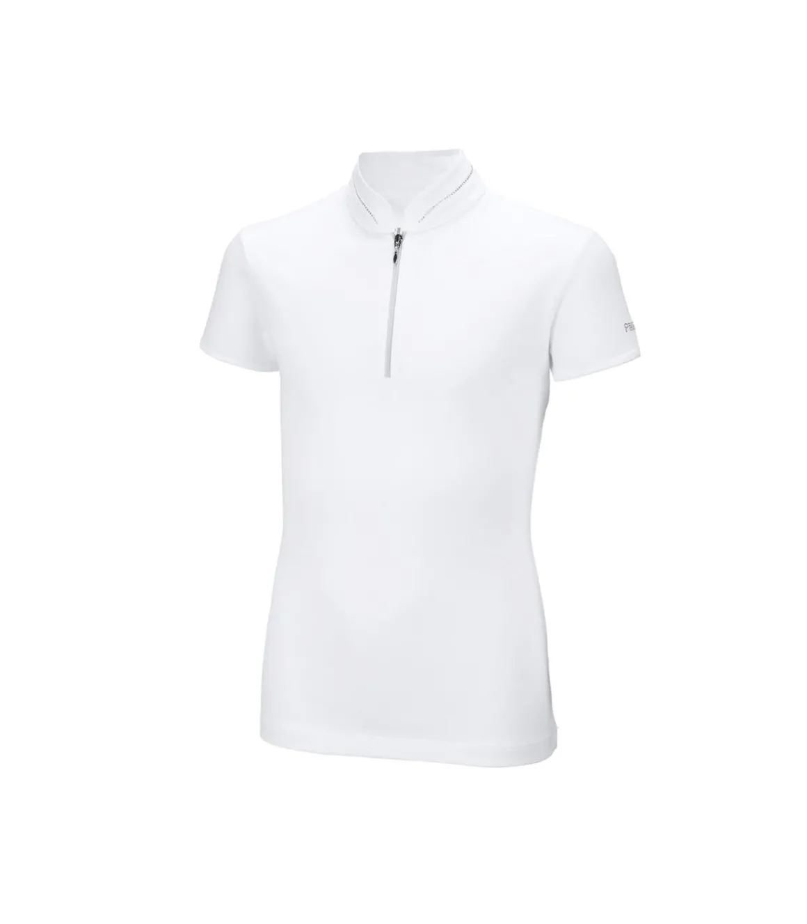 Ce ravissant dessus de concours pour enfant de chez Pikeur est sophistiqué avec sa ligne de trace sur tout le col. Le nom de la marque est également repris en strass sur le bord de la manche gauche.