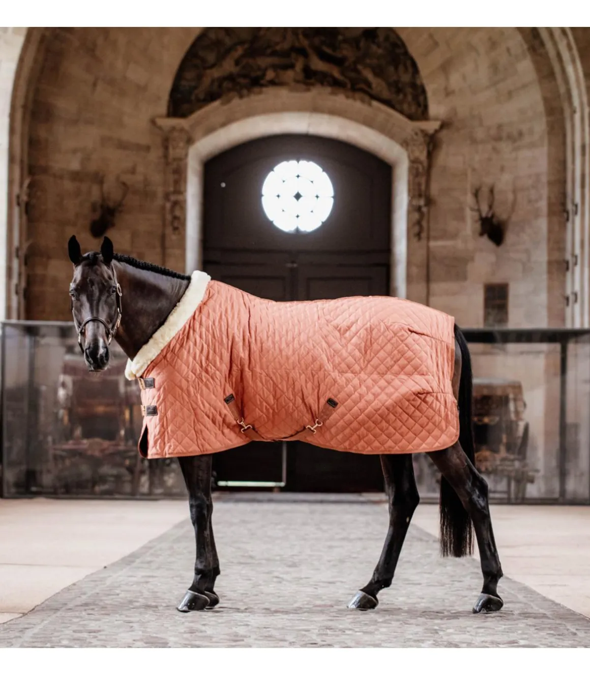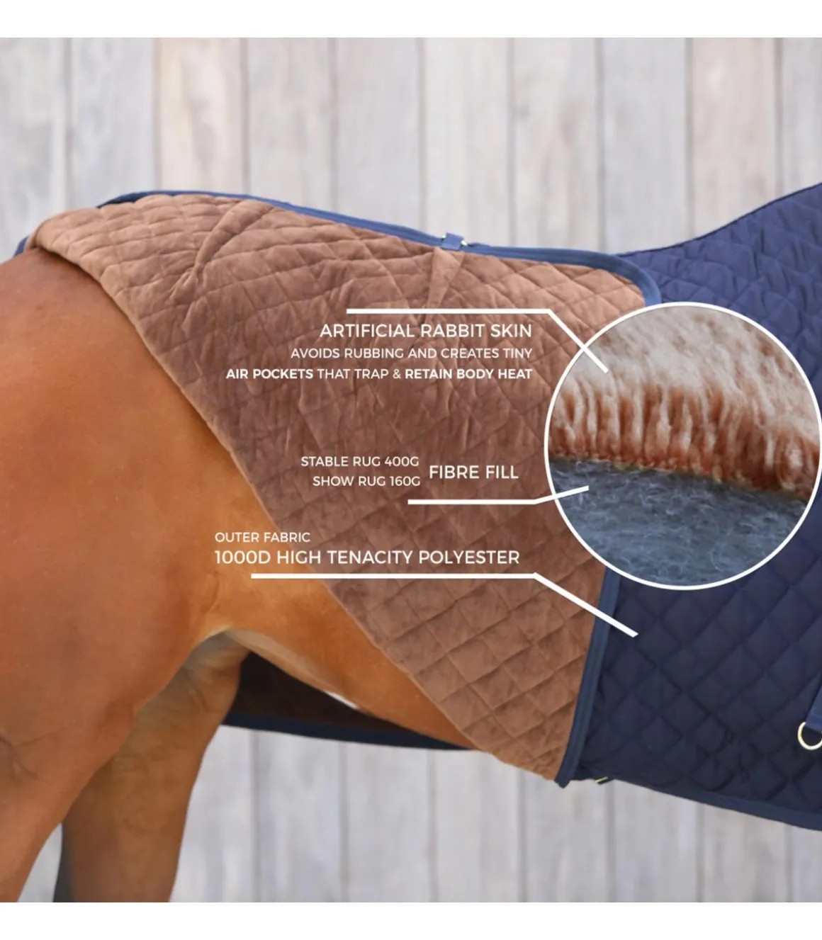 Le tissu extérieur avec son motif diamant matelassé empêche le cheval de mordre et de déchirer la couverture.