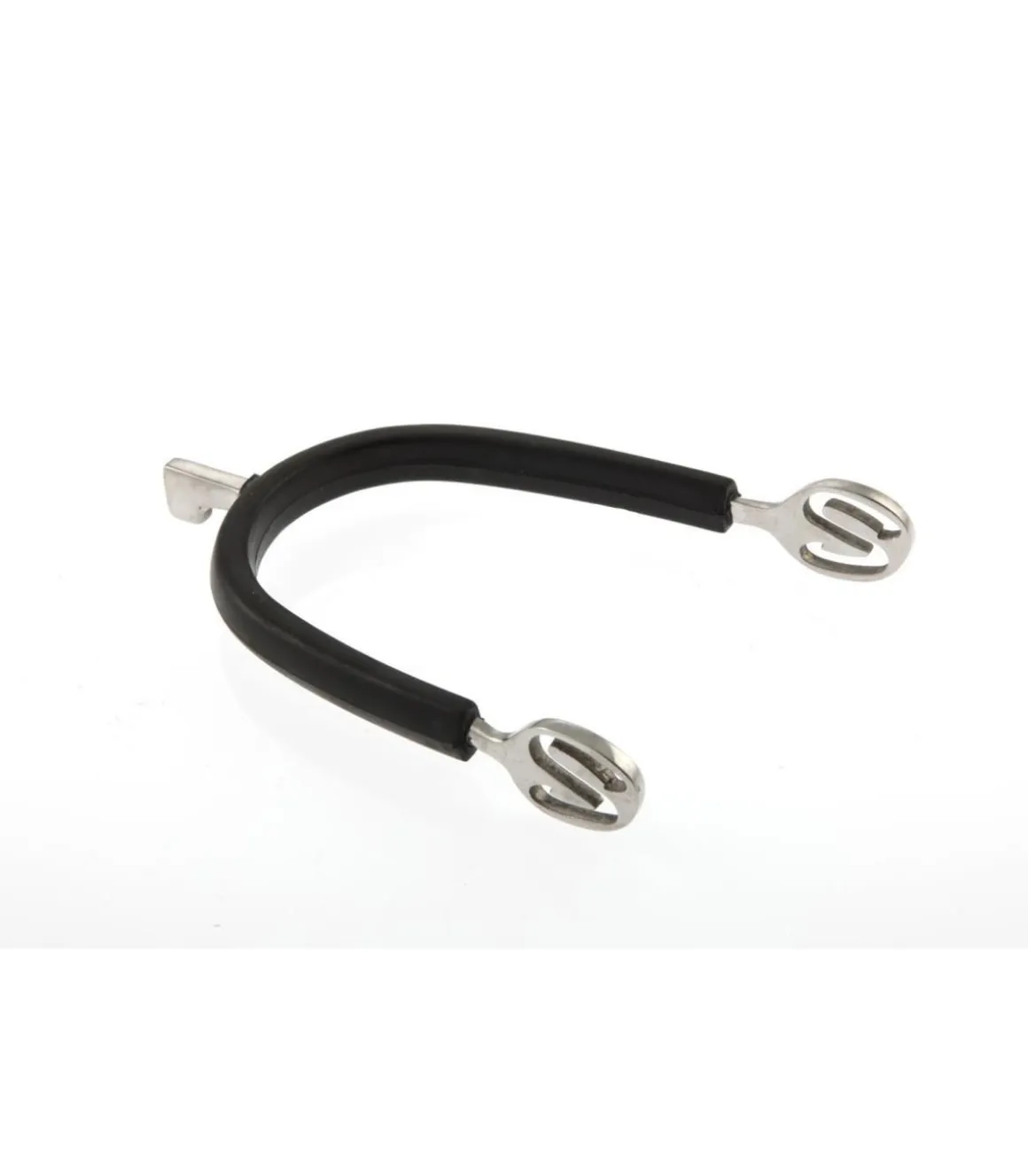 Eperon pessoa à tête marteau en inox est recouvert de caoutchouc noir antidérapant. Les oeillets en S aide au positionnement de la lanière sur la cheville et offre plus de maintien.