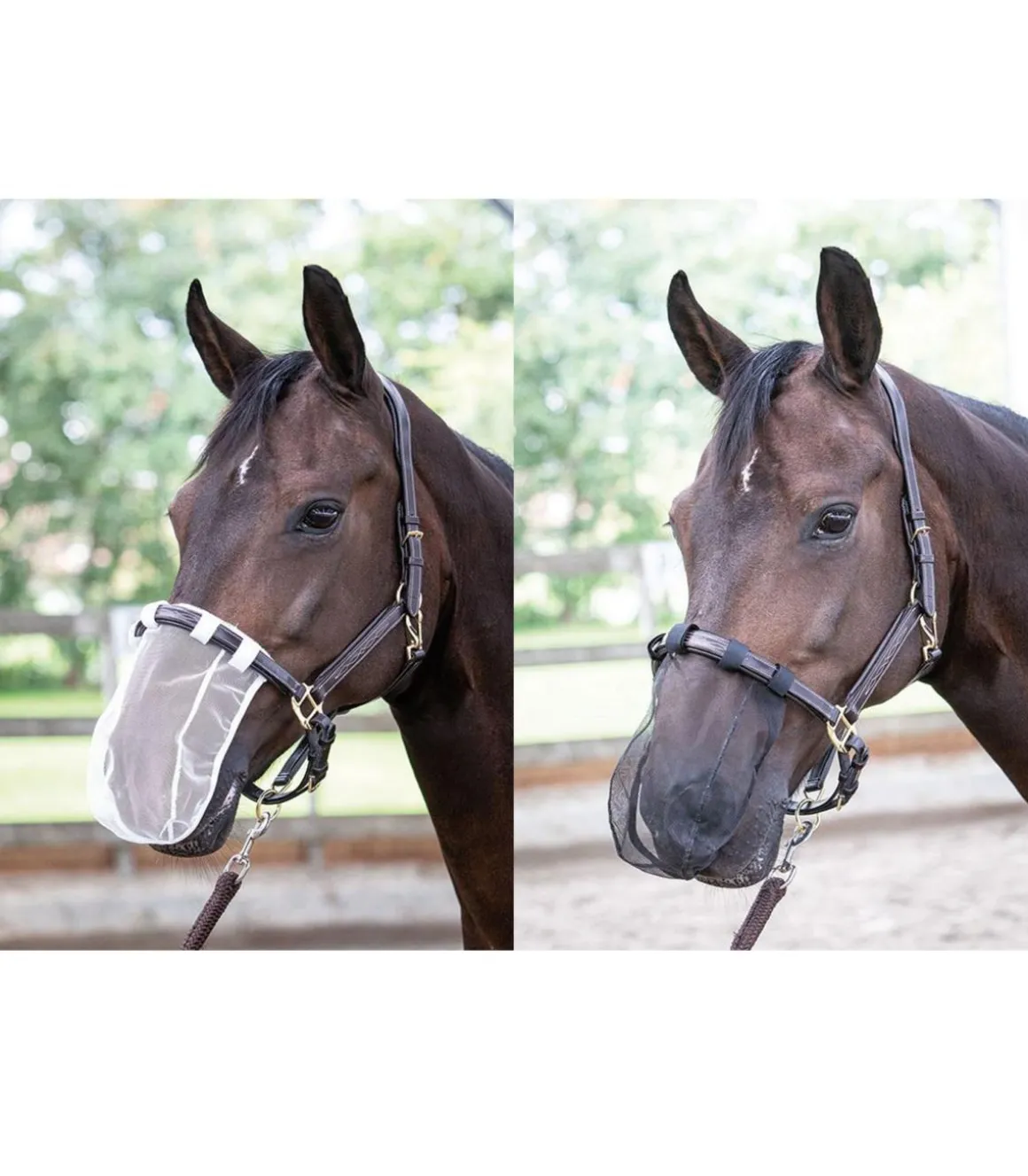 Le filet à naseaux en forme anatomique de chez Harry’s Horse est une protection en résille idéale pour les chevaux qui encensent. Il protège également des UV à 95% mais ausis du pollen, des mouches, … tout ce qui peut ennuyer et irriter le nez du cheval.