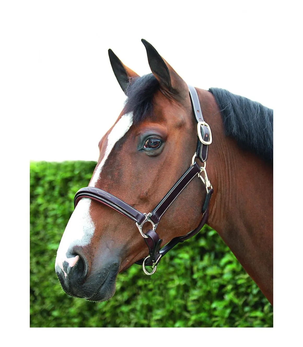 La têtière et la muserolle sont matelassés et agrémentées de surpiqûres décoratives.