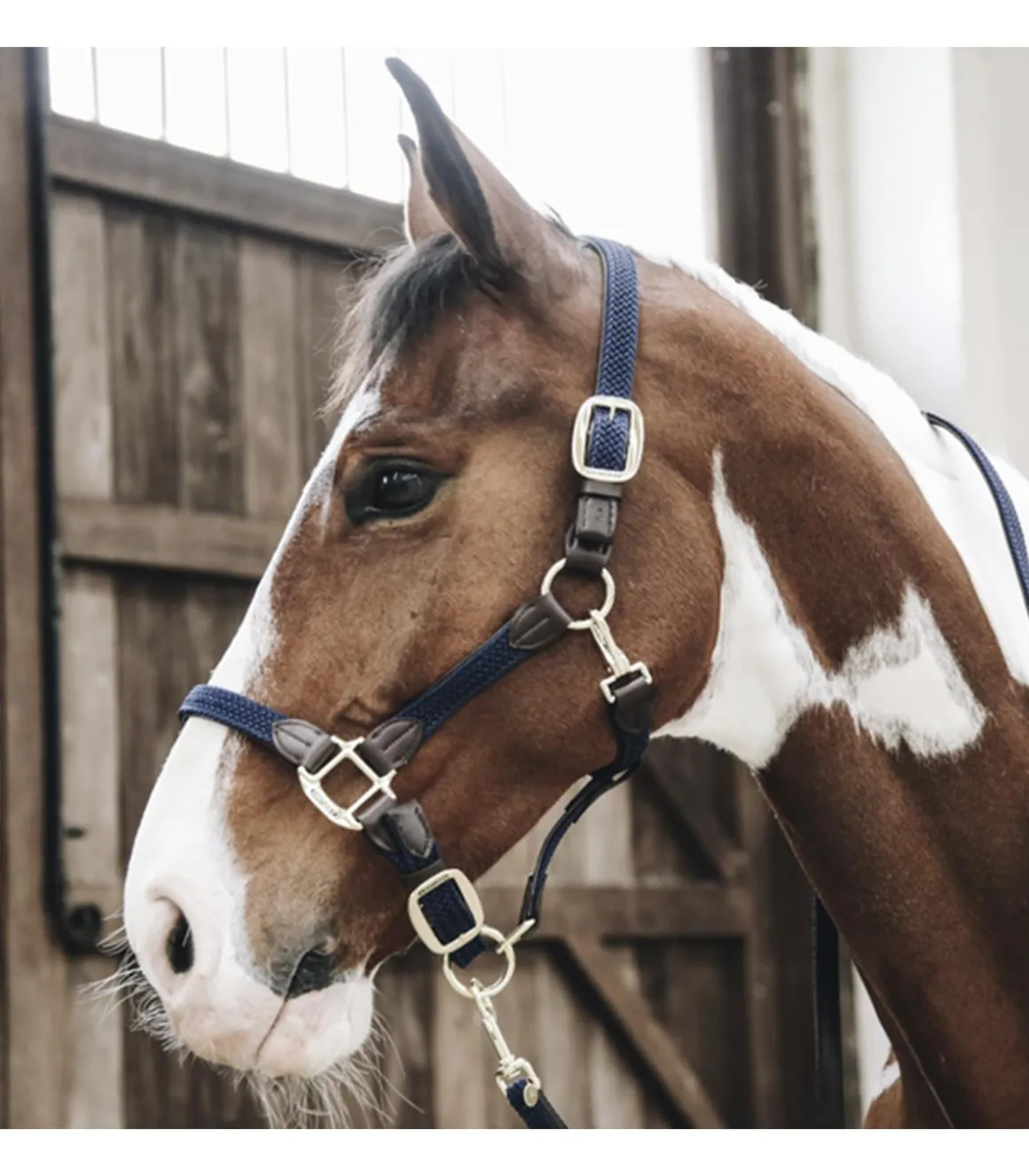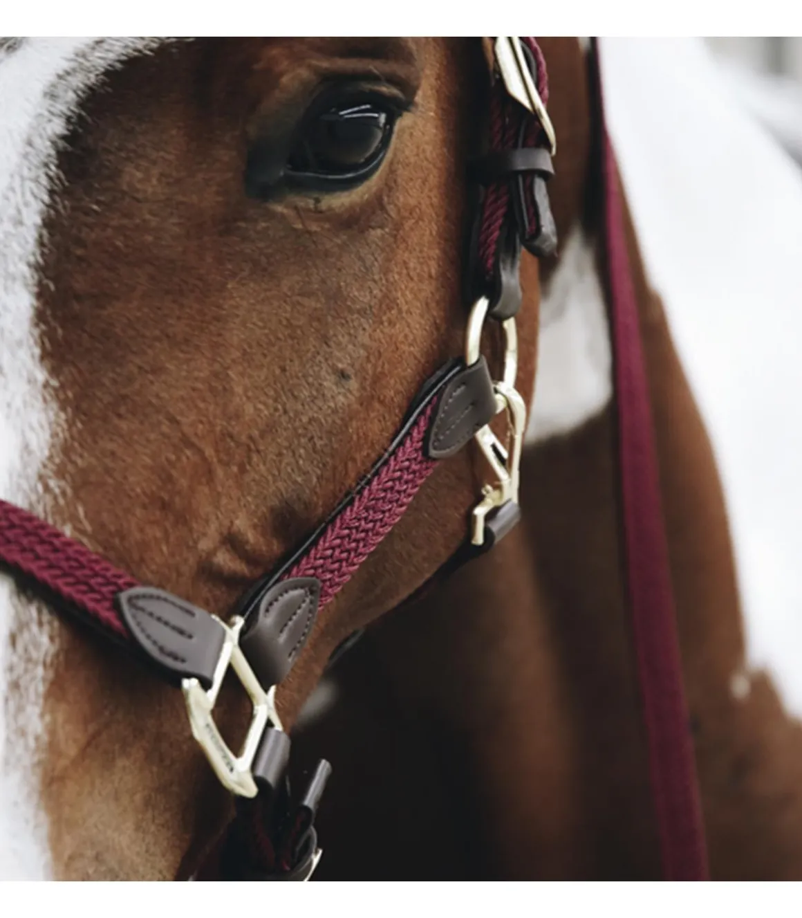 Le licol nylon tressé Kentucky est fait de similicuir (100% respectueux des animaux). Ce cuir est recouvert de nylon tressé. Il n’absorbe ni l’eau ni la saleté, ne casse pas et ne change pas de couleur.
