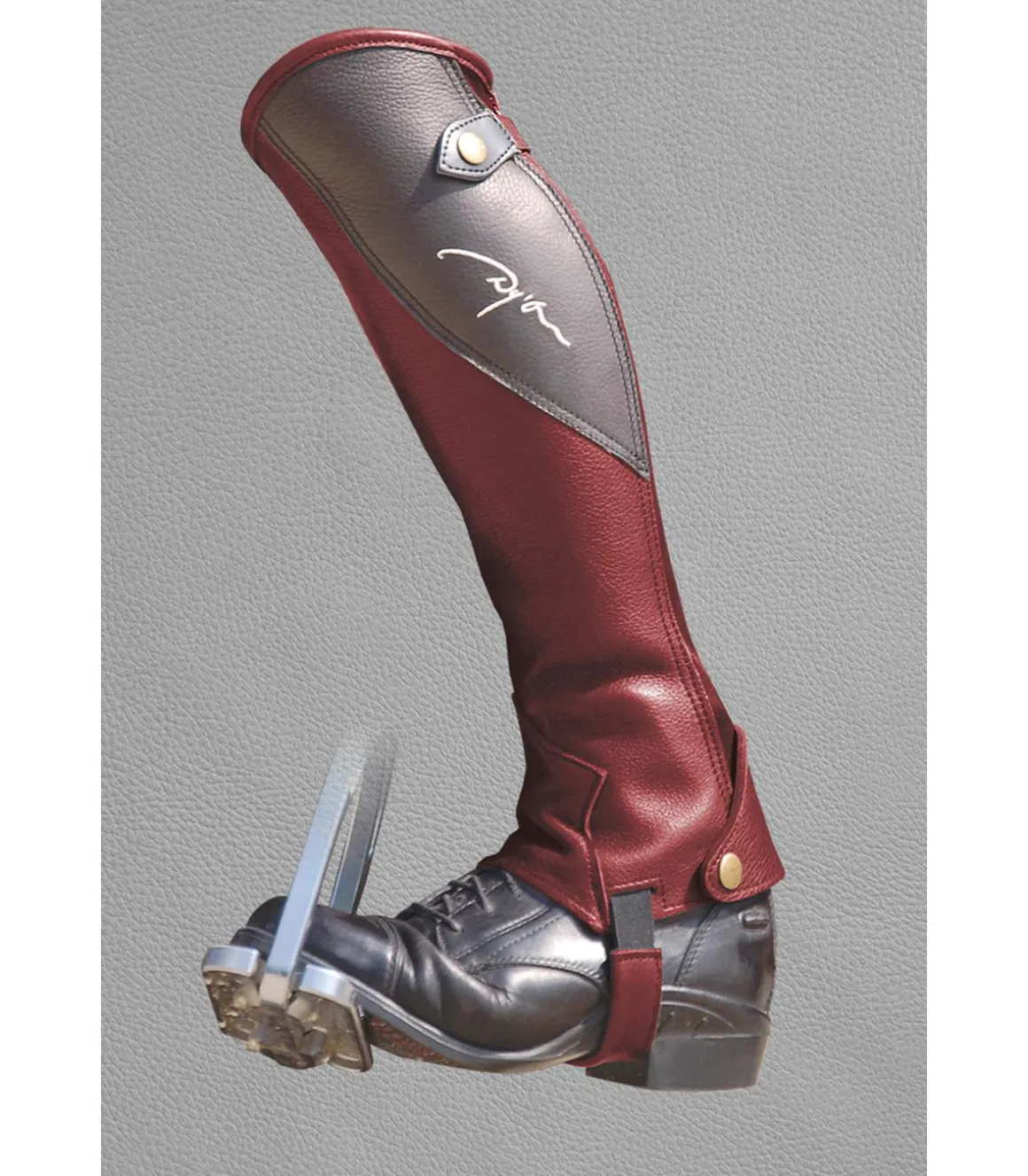 - Logo brodé en fil crème sur la face externe du mini chaps
