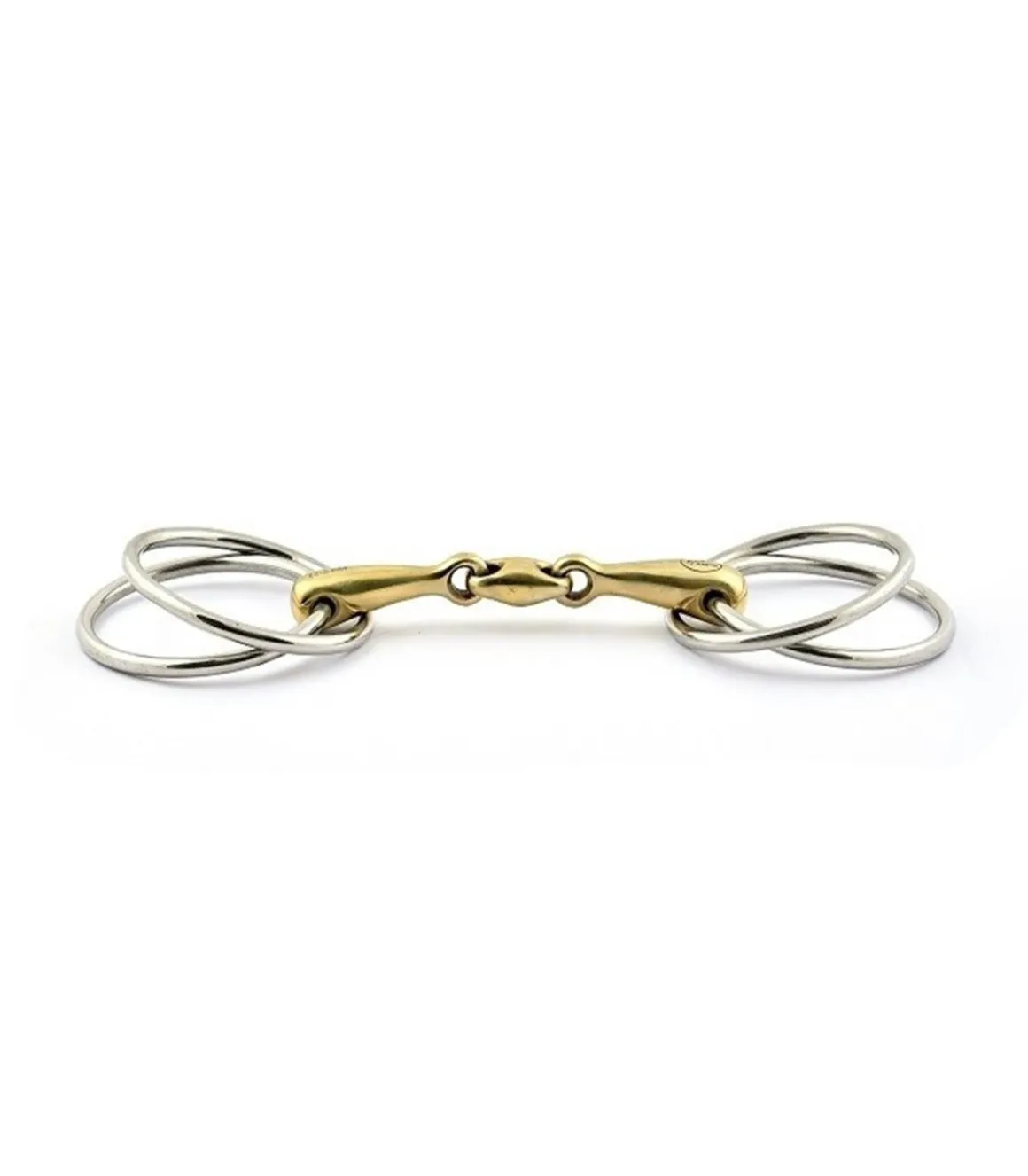 Le mors à 4 anneaux Jump’in a une double brisure et les anneaux font 70 mm. Le canon est standard en 17 mm en German Silver (655 cuivre, 235 zinc, 125 nickel) et avec un alliage décontractant et solide.