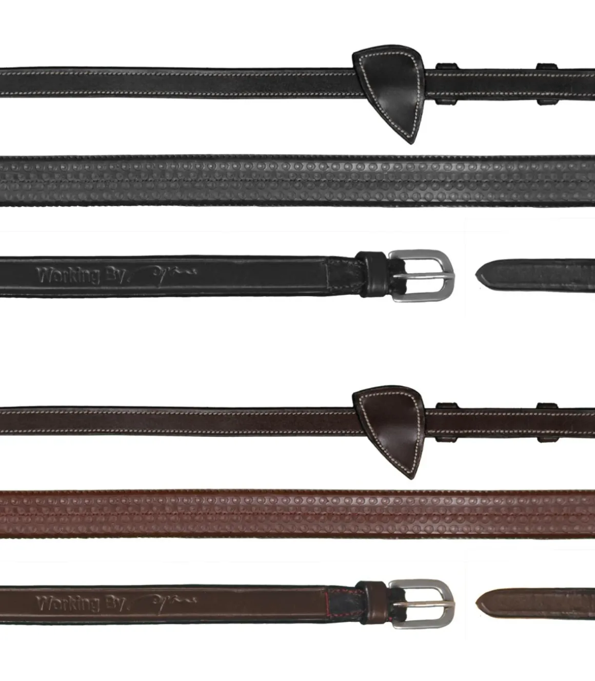 Les rênes pour la working collection ont toutes la partie hors main qui est fabriquée dans un cuir de buffle plat