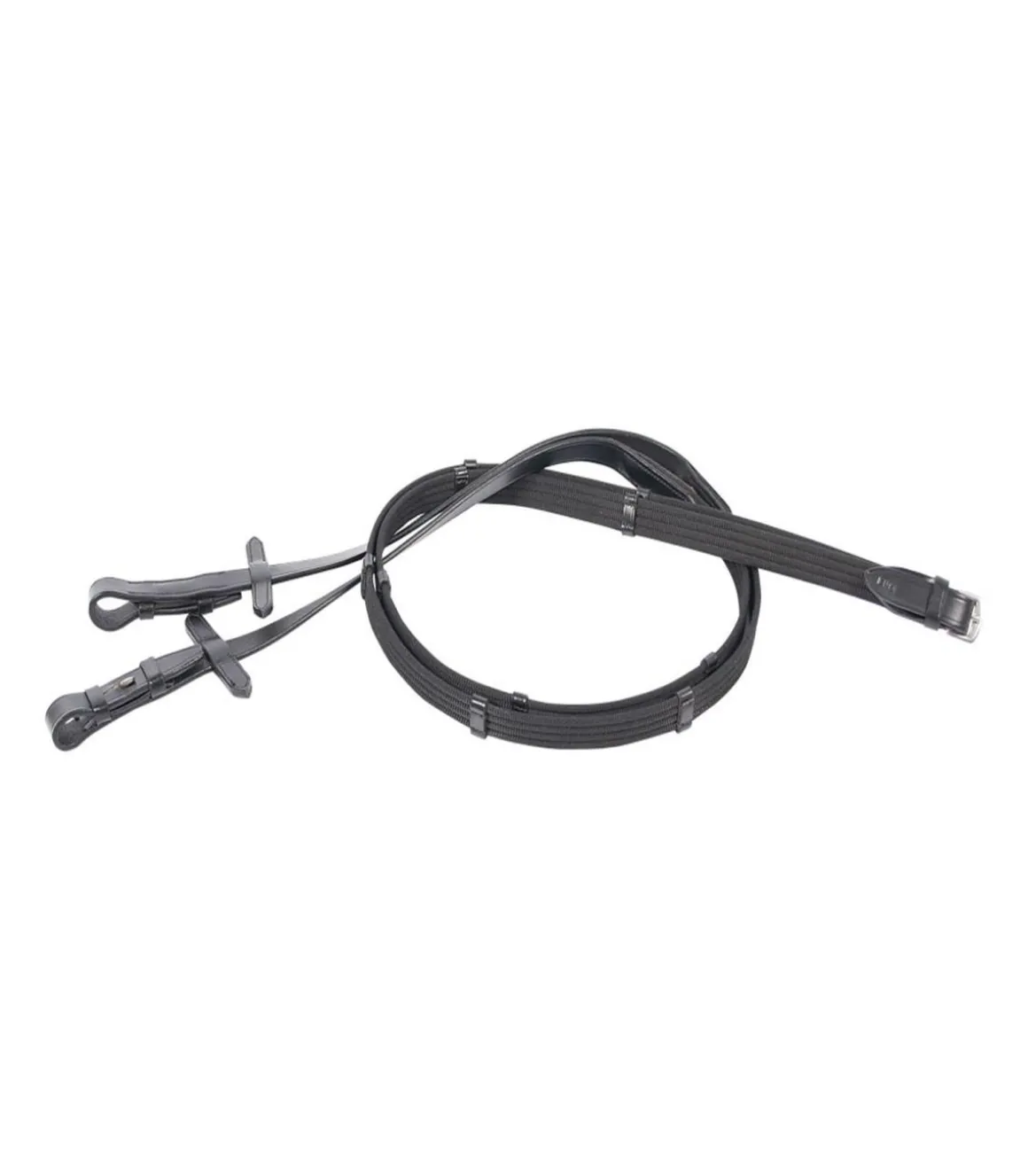 Cette paire de rêne en sangle toile avec plusieurs arrêtoirs sur la sangle permet d’éviter que les doigts du cavalier ne glissent. Elle est idéale également pour les chevaux qui transpirent beaucoup.