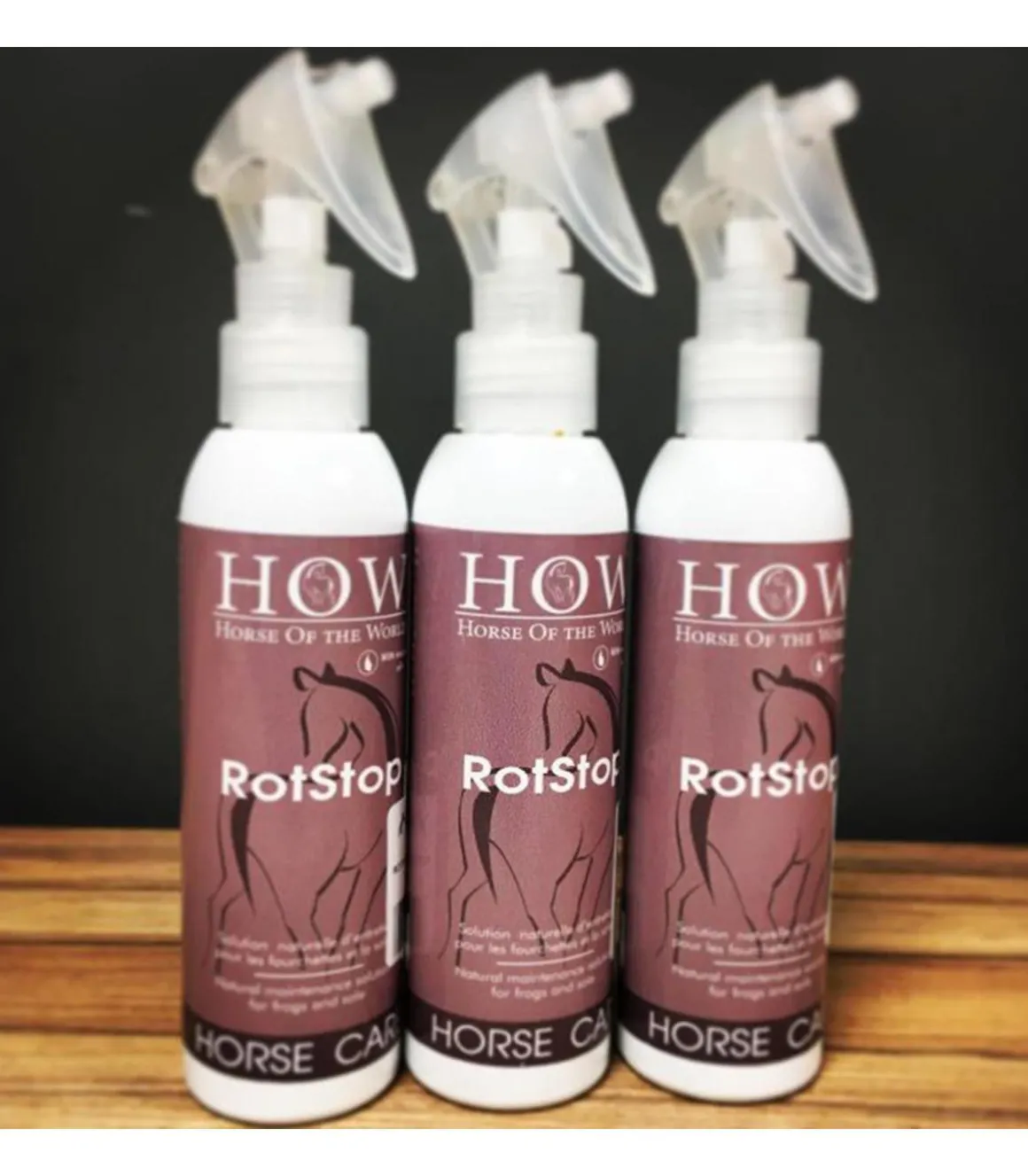 Le spray Rotstop de chez Horse of the World est une solution naturelle sur base de multiples huiles essentielles asseptisantes recommandées pour soigner les fourchettes pourries, sensibles ou malodorantes.