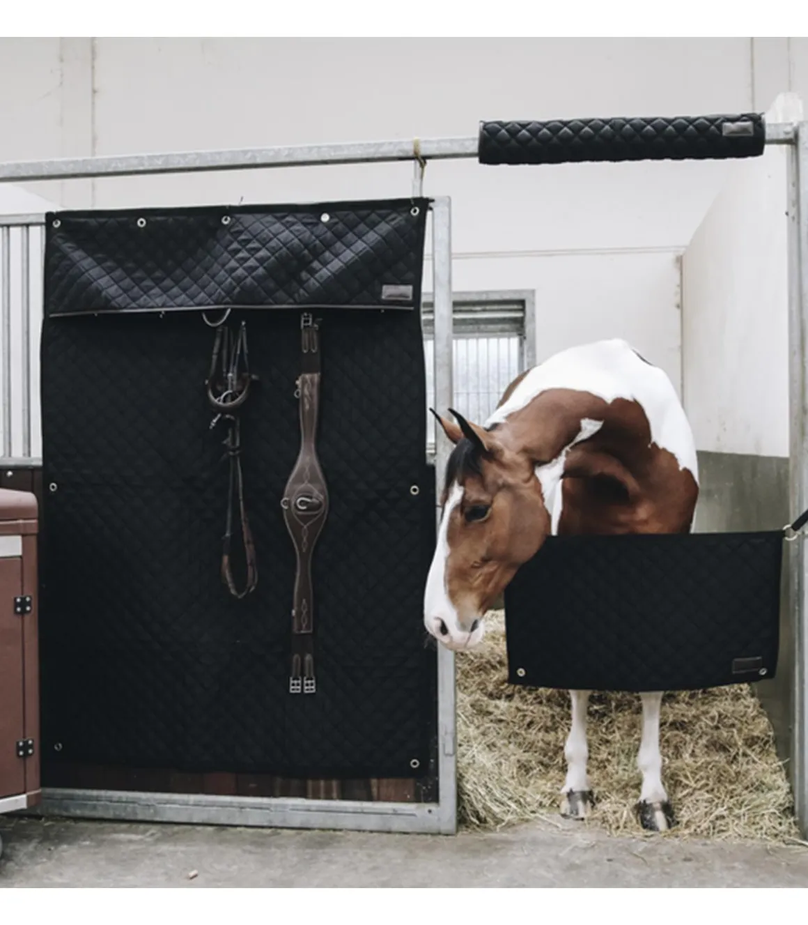 La tenture de box Stable Curtain Kentucky offre à votre cheval un repos bien mérité en concours ou à la maison. Cette tenture comporte cinq œillets dorés renforcés pour pouvoir la fixer au box.