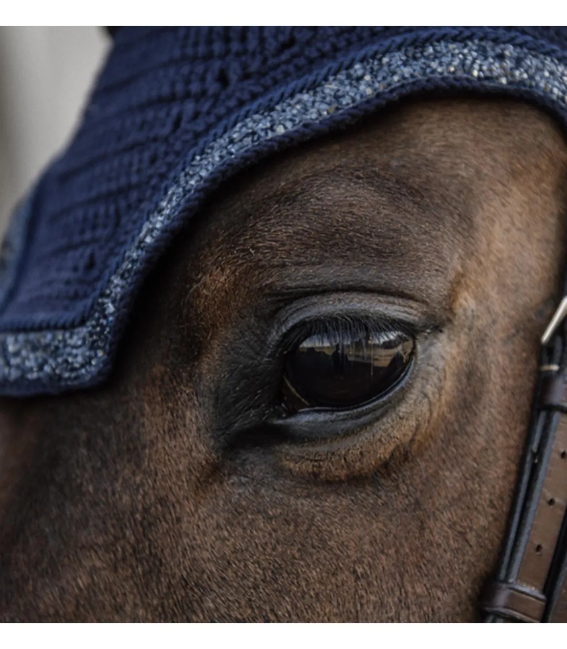 Le bonnet anti-mouches Wellington Glitter Stone Kentucky est tricoté à la main pour garantir sa durabilité. Il est très populaire pour son look américain. Il possède un contour en perles scintillantes.