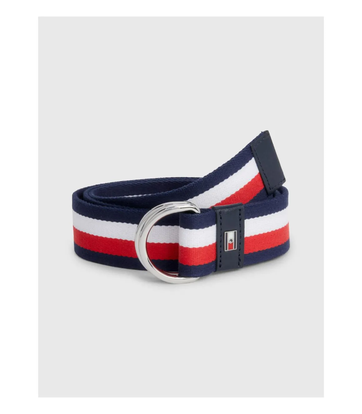 La ceinture Tommy Hilfiger est une ceinture en sangle. Elle est tissée avec une bande aux couleurs de Tommy Hilfiger au milieu. Elle se ferme à l’aide d’une fermeture avec anneaux (doré pour les femmes) comme une sangle.