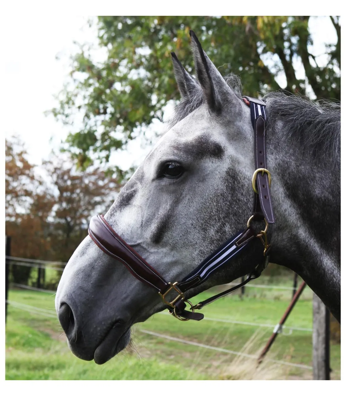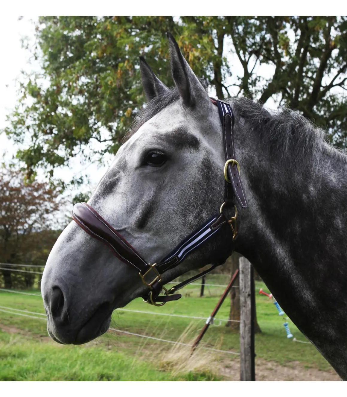 Le licol en cuir et élastique Ralph de chez JMR PRO est un magnifique modèle en cuir brun composé d’élastiques (uniquement sur les joues et sur les extrémités de la têtière) pour apporter plus de confort et moins de pression.