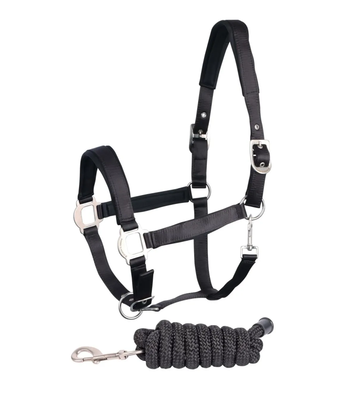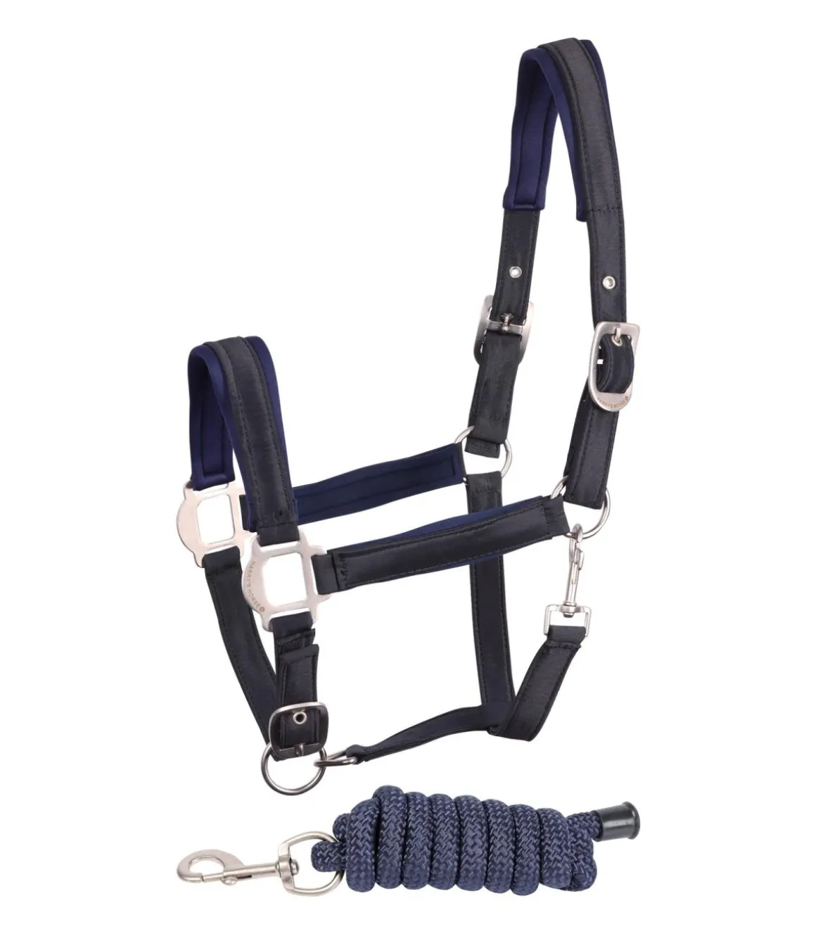 Licol doublé de satin et de néoprène pour un contact doux avec la peau du cheval.