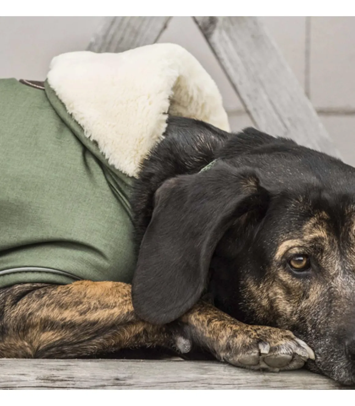 Il y a une petite capuche en peau de mouton artificielle pour protéger la tête de votre chien.