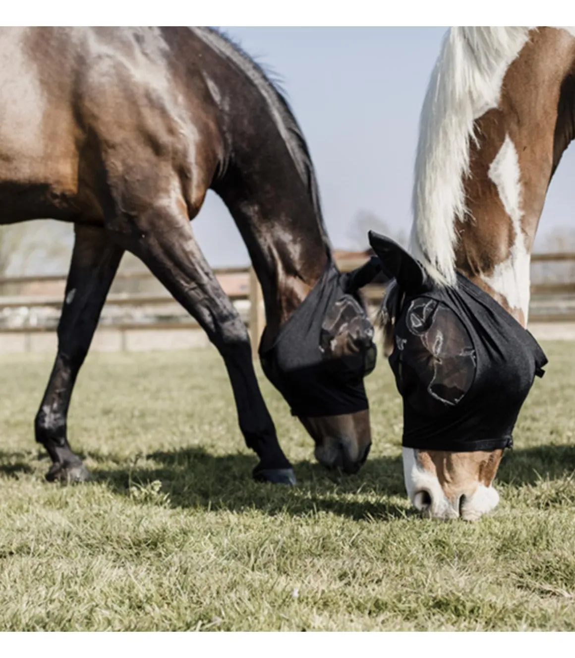 Le masque anti-mouches Slim Fit de chez Kentucky est conçu pour offrir une barrière efficace contre les mouches et autres nuisibles. Il agit comme une seconde peau grâce à sa fabrication en lycra doux et extensible qui épouse parfaitement la morphologie du cheval sans gêner ses mouvements.