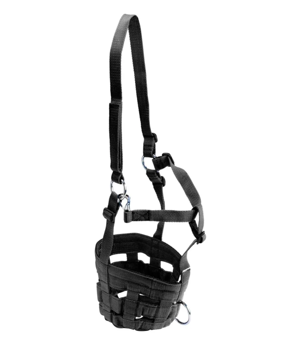 Idéale pour les chevaux en soin ou au régime temporaire. Anneau frontal pour fixer une longe lors des manipulations.