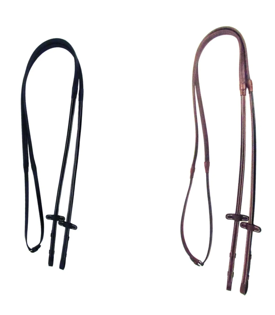 Les rênes en caoutchouc 13mm de chez Cavaletti ont une largeur de 13mm. Elle sont surpiquées blanc au niveau du cuir. Les boucleries sont en inox.