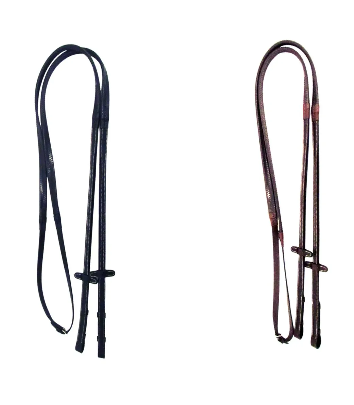 Les rênes caoutchouc de chez Cavaletti ont une largeur de 16mm. Elle sont surpiquées en blanc au niveau du cuir. Les boucleries sont en inox.