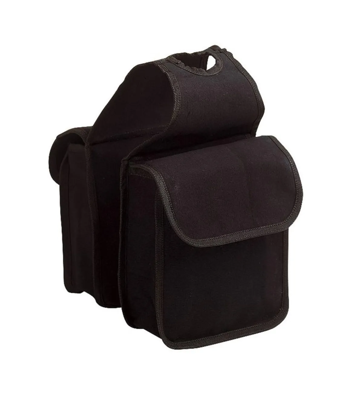 Petites sacoches doubles en canvas bordé nylon à passer par dessus le pommeau d’une selle western.