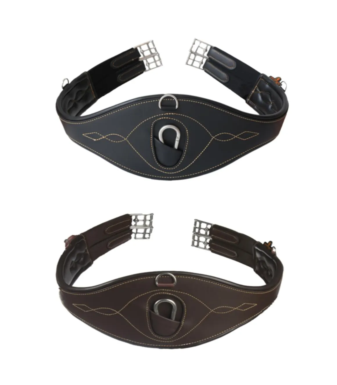 La sangle dispose d’une mousse EVA protectrice ainsi que de doubles élastiques triplement renforcés aux deux extrémités pour égaliser la pression, de trois anneaux pour vos différents enrênements et un mousqueton central pour fixer la martingale.