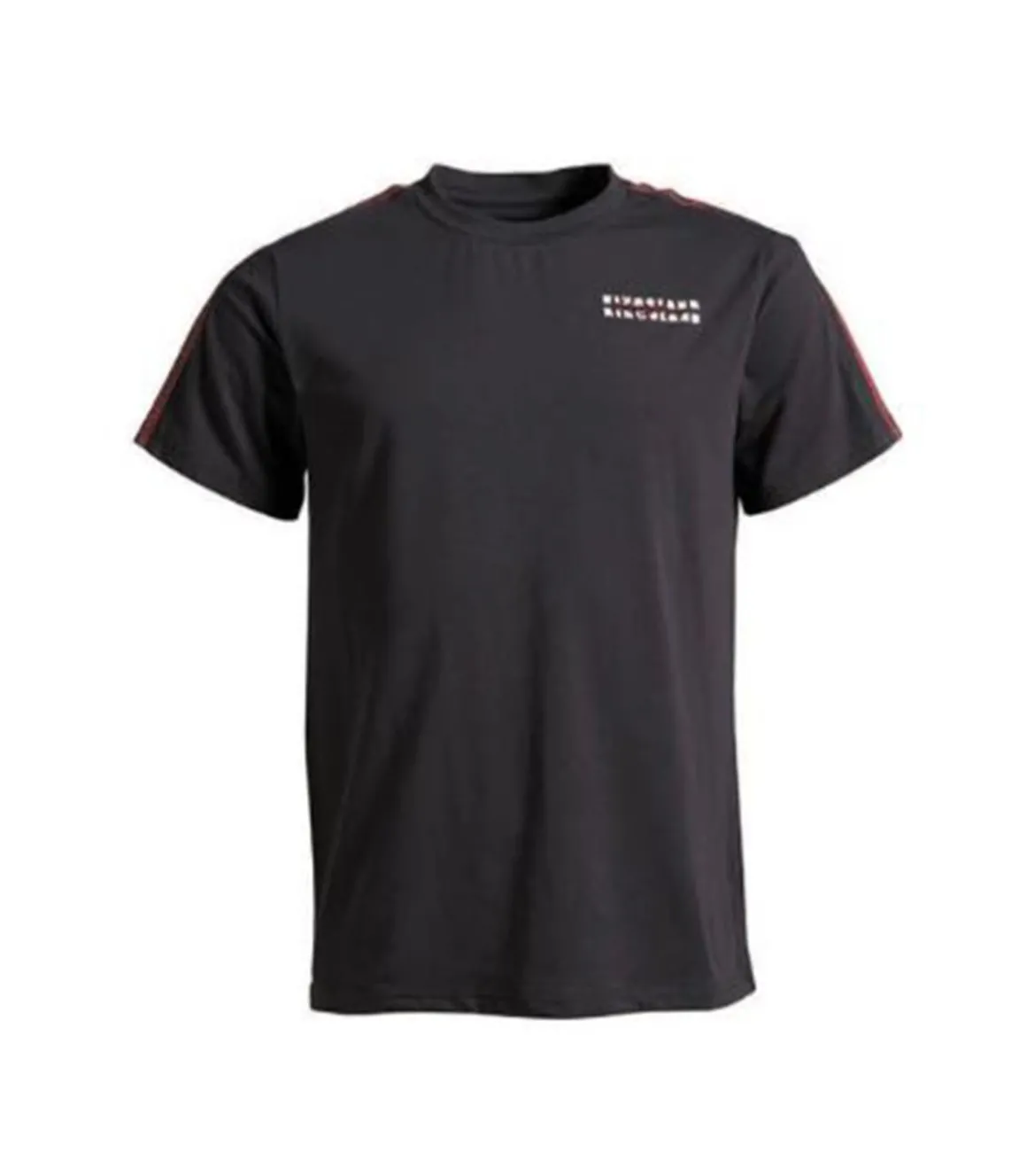 >Du col jusqu’au bas des manches, dans la longueur, il y a une bande rouge qui rappelle la marque.