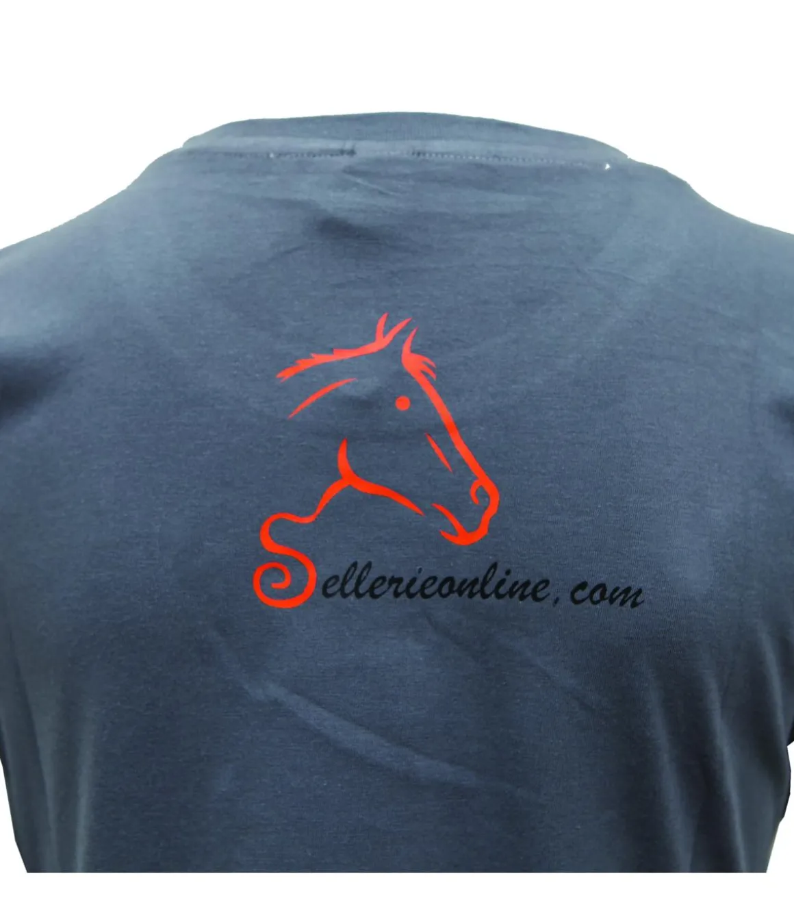 Sur l’avant du t-shirt, au niveau de la poitrine à gauche, il y a le logo Sellerie Online.